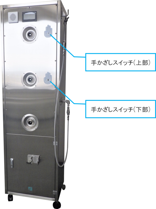 ②下部の手形マークに手をかざすと、新たに追加したシャワーヘッドから噴霧します。