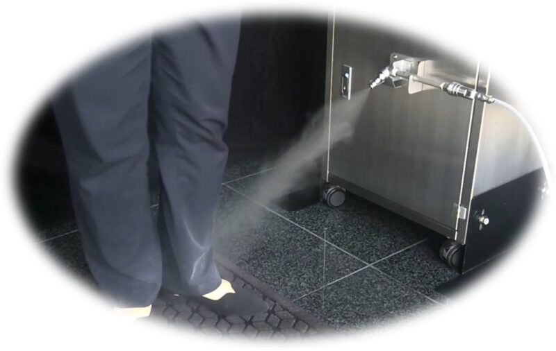 「粉体の飛散防止と安全な脱衣のために、防護服を湿潤したい」とのご要望があり、応えるため